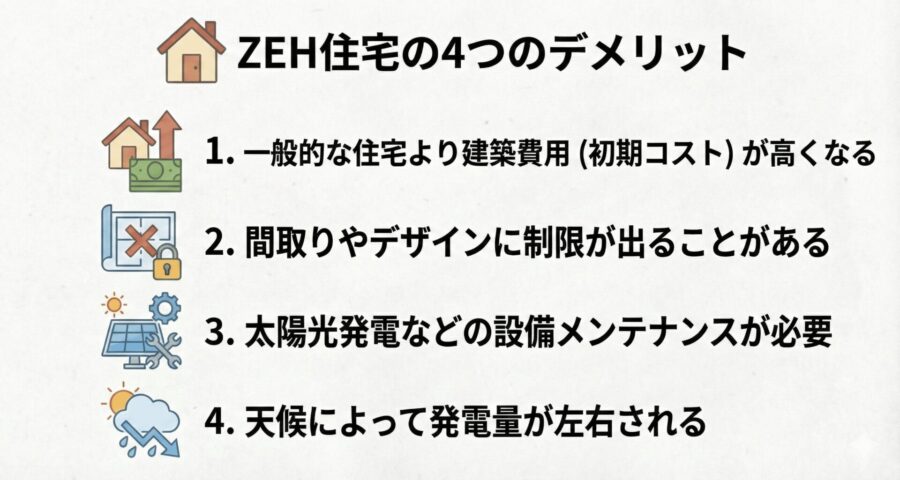 メリットの多いZEHですが、デメリットがないわけではありません。