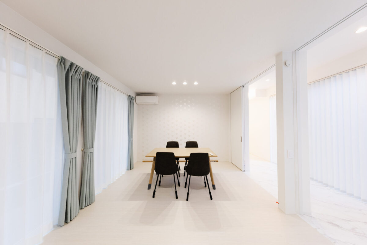 引き戸を閉めるだけで簡単に個室として使える、ミニマルな内装の洋室。家族構成やライフスタイルに合わせて、さまざまな用途で活用できます。