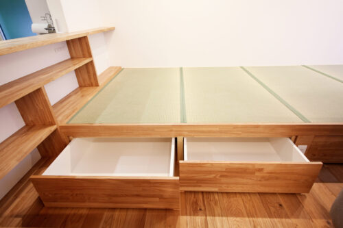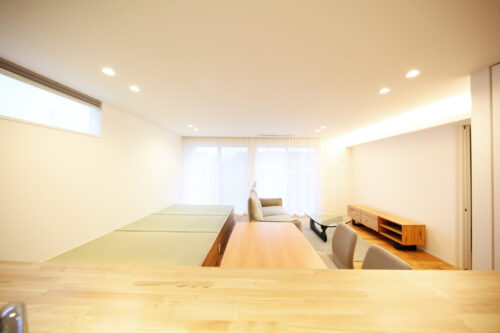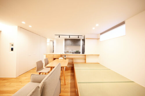 和の雰囲気を感じられる居心地の良い畳スペース。リビングの一角に設けられた小上がりには、ディライトホームのこだわりが詰まっています。